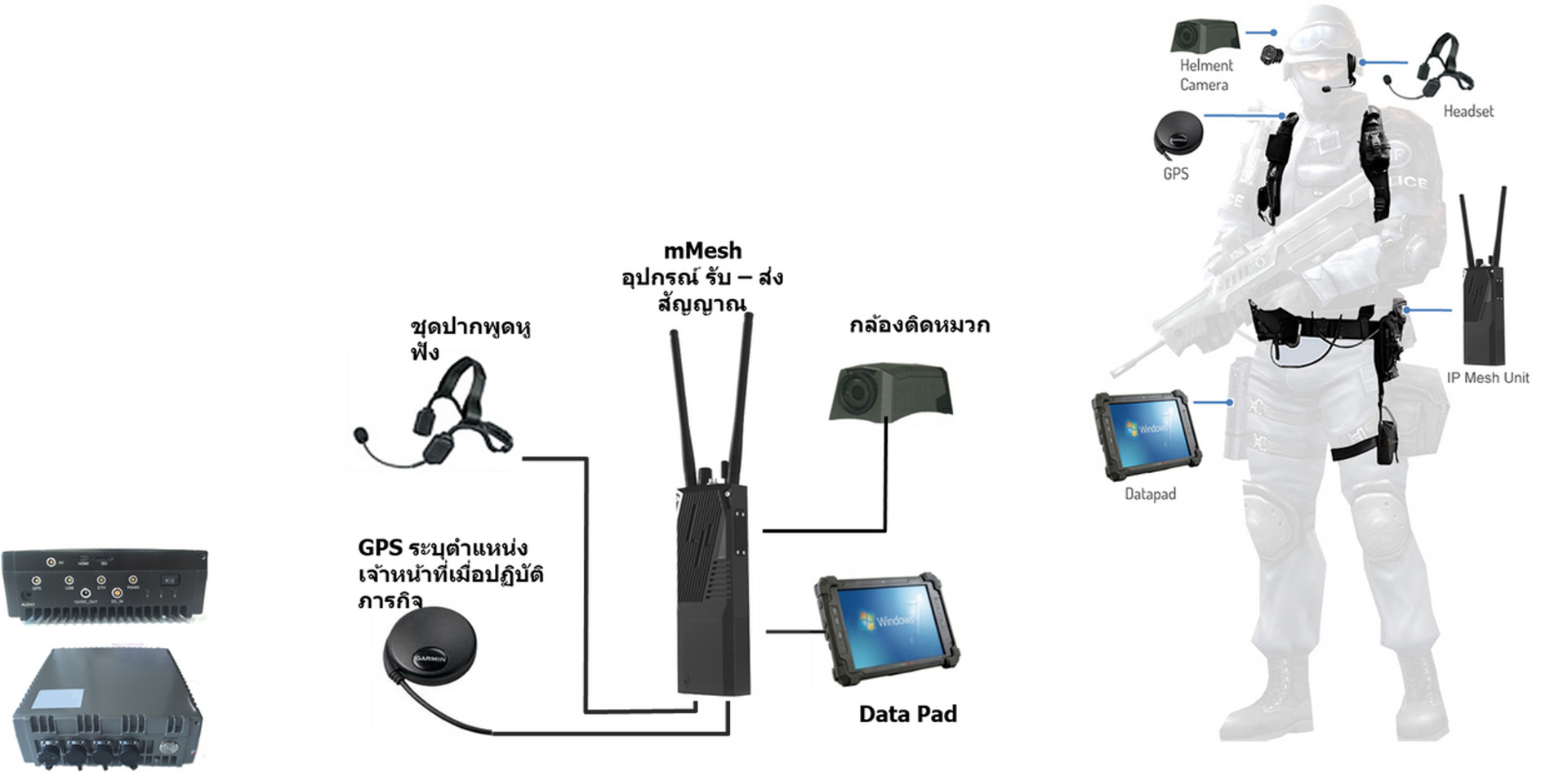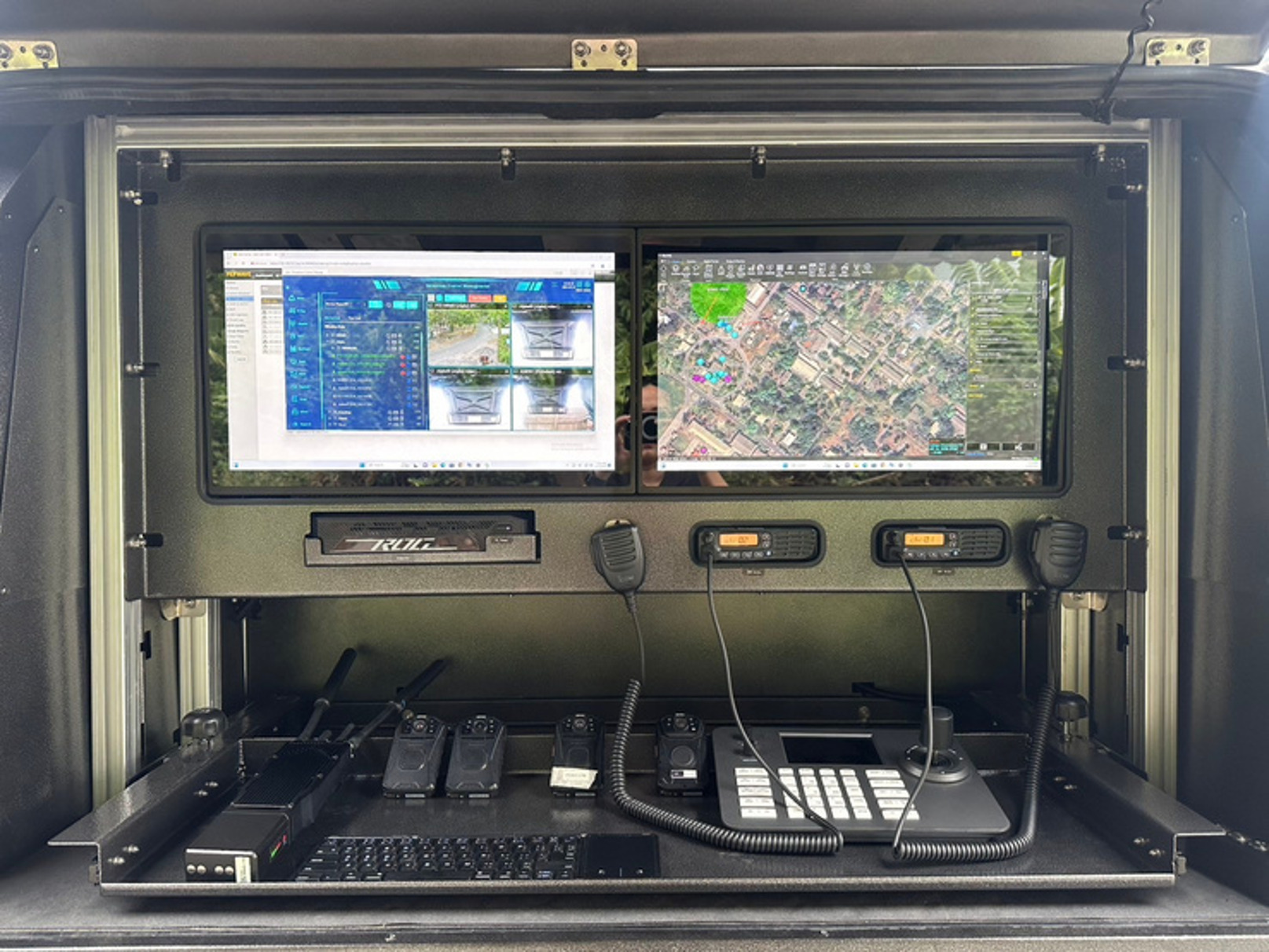 สำหรับปฏิบัติในพื้นที่ทุกสภาพ บนพื้นที่ไม่มีสัญญาณเครือข่าย ด้วยระบบวิทยุ Mesh-Radio คลื่น L-band สร้างเครือข่าย “เมช”เอง สามารถส่งภาพ เสียง และข้อมูลไปยังศูนย์สั่งการได้แม้ขาดสัญญาณ ตัวรถมีระบบเฝ้าระวังและติดตามสถานการณ์ แสดงตำแหน่ง ภาพและเสียงของเจ้าหน้าที่แบบเรียลไทม์ เชื่อมต่อกล้องจากโดรน กล้องติดตัวเจ้าหน้าที่ หรืออุปกรณ์อื่นๆ